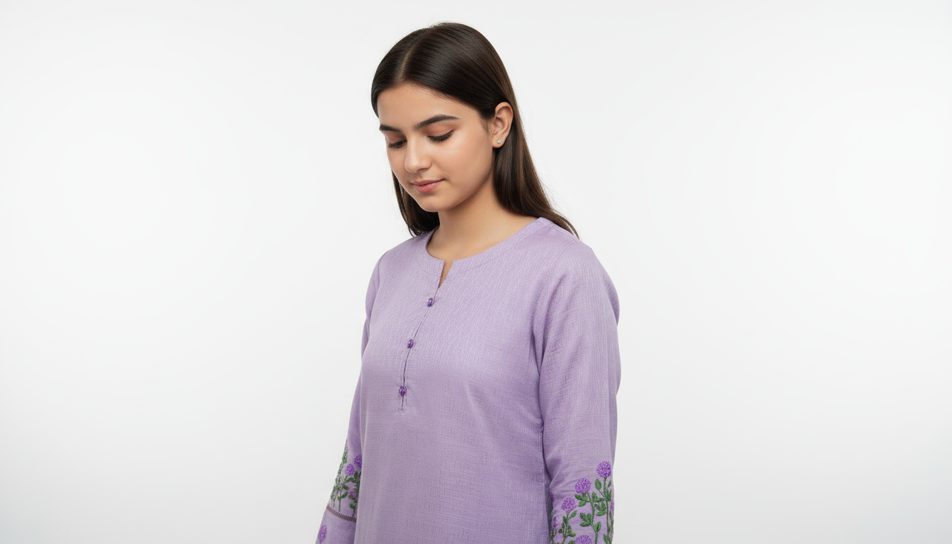 Beige Mirror-Embroidered Kurta Set (2‑Piece)